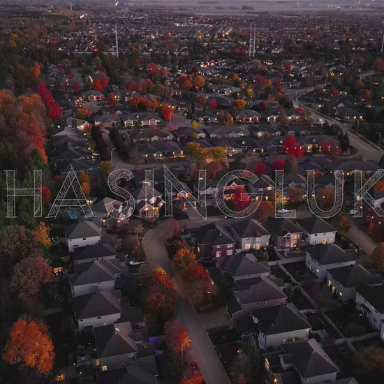 This smooth aerial descent captures the a late autumn evening in Bridlewood, Kanata. The shot begins with a downward-angled view towards Pine Hill Drive, gradually revealing rooftops framed by fall foliage and the adjacent NCC lands to the left. As the drone lowers, it slowly tilts upward to meet the dusk horizon. Perfect for intros, mood-setting sequences, or themes of home and seasonal change.