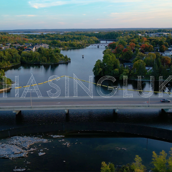 Captured during a calm early autumn evening, this aerial drone shot travels parallel to the Madawaska Blvd bridge in Arnprior. The shot begins with Hydro Park on the left and looks across the man-made waterfall dam flowing into the Madawaska River. As the drone glides sideways, the frame reveals bridges stretching across the water and the town’s water tower in the background. With leaves just starting to turn, the landscape shows a subtle mix of green and early fall colours. This shot offers a balanced blend of natural and civic detail, perfect for use in municipal projects, local storytelling, or scenic Ontario b-roll.