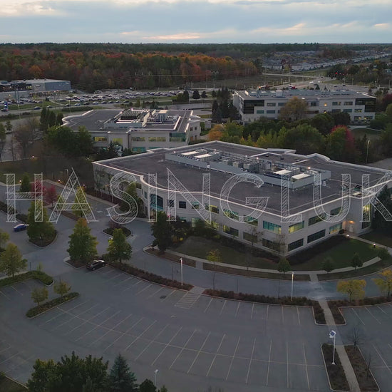 Captured during a still early evening in mid-October. This aerial footage lifts gently above Innovation Drive in Kanata North, Ottawa’s prominent technology park. The shot reveals a mix of modern office buildings and soft fall colours as Trillium Woods Park adds rich texture in the distance. The OC Transpo Innovation Park & Ride and the Richcraft Recreation Complex appear clearly in the frame, grounding the scene in recognizable suburban landmarks. With overcast skies softening the light, this clip offers a calm, professional atmosphere ideal for tech, infrastructure, or seasonal themes.