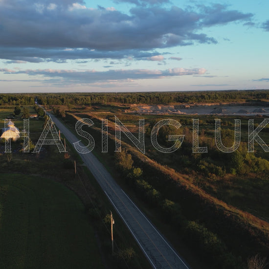 Filmed as the sun dipped behind the horizon, the scene combines rural textures with industrial activity, highlighted by long shadows and a rich golden tone. This shot is well-suited for documentaries, land use studies, or creative projects that want to capture both the natural and industrial character of Lanark County.