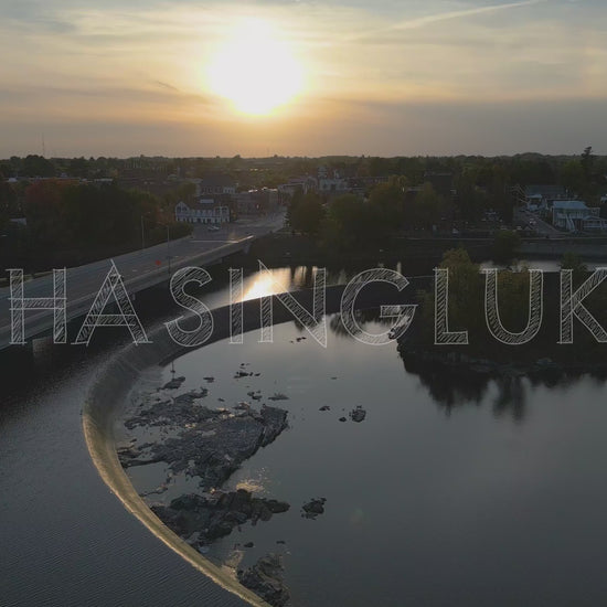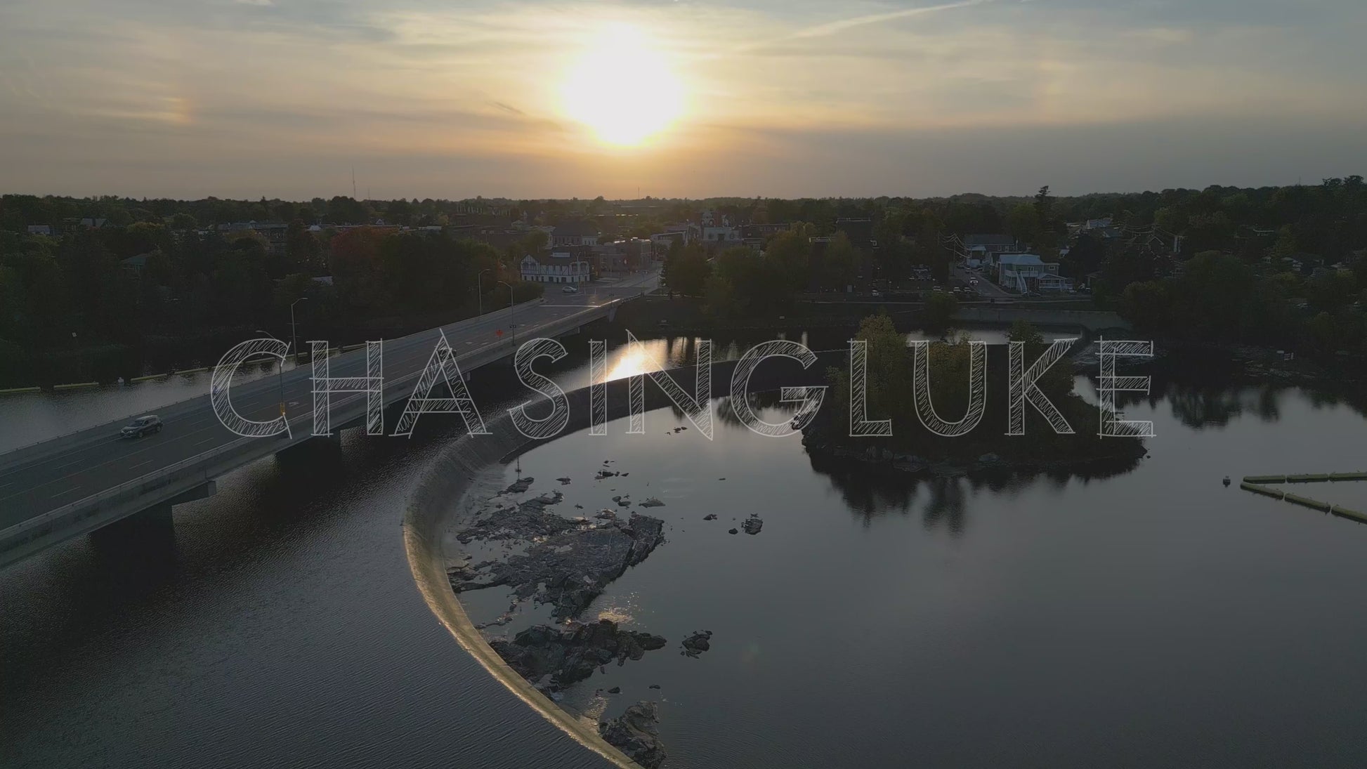Golden Hour Tilt-Down Over Arnprior Bridge and Man-Made Waterfall