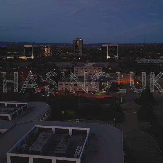 This late evening aerial clip captures a gradual drone rise looking north across the Kanata North tech park. The camera faces Hines Road and March Road, where light traffic moves steadily through the frame. Streetlights glow across quiet parking lots, reflecting off surrounding office buildings and casting a soft urban ambiance. As the sky deepens with the onset of night, the balance of natural and artificial light gives this shot a calm, transitional mood. Ideal for showcasing suburban infrastructure, after-hours corporate settings, or urban dusk sequences.