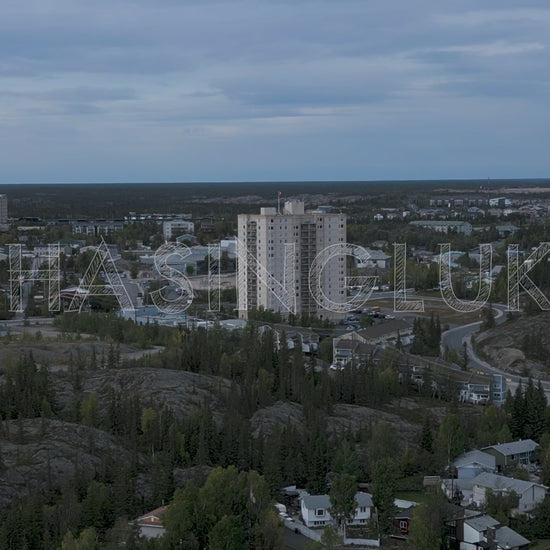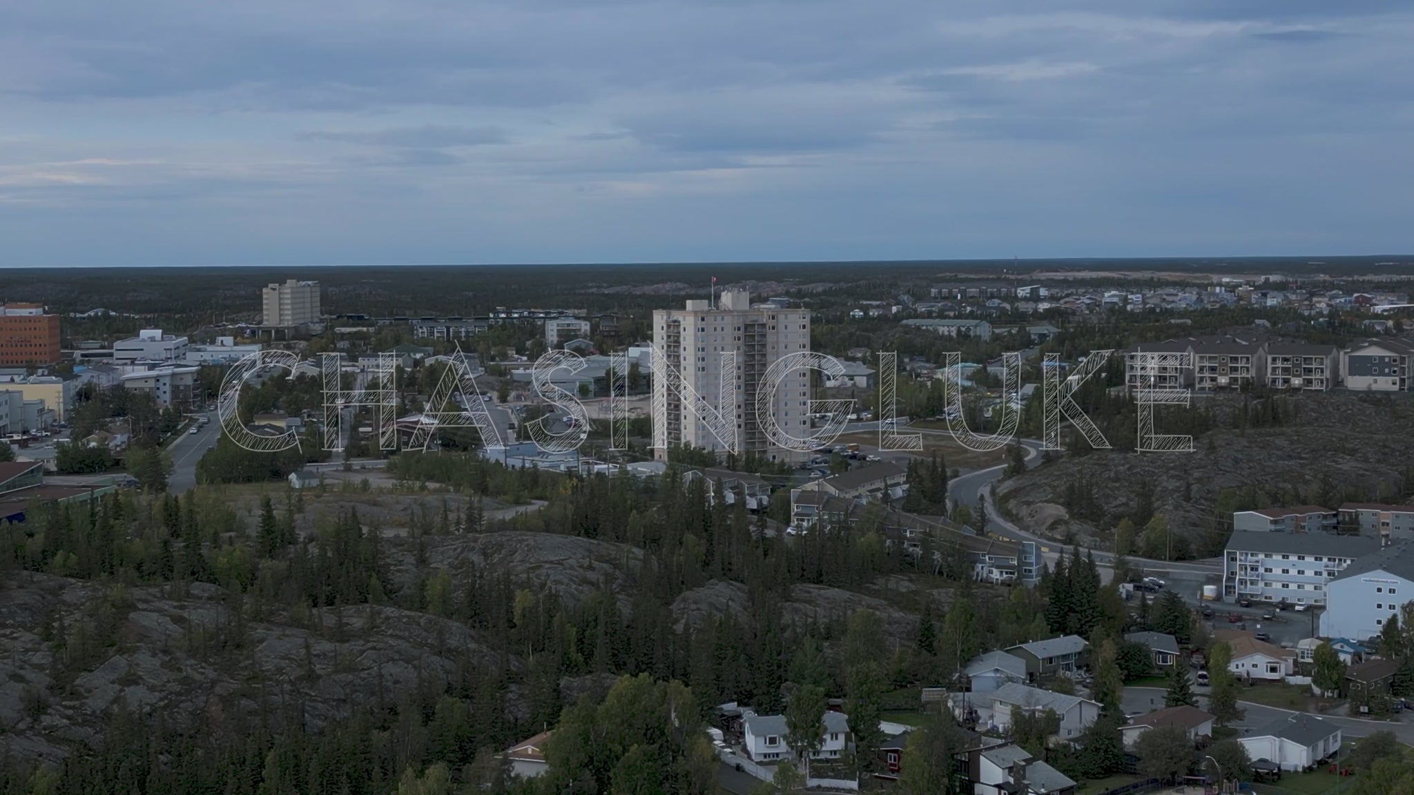 This cinematic aerial zoom slowly pulls back over Yellowknife, Northwest Territories, revealing the downtown edge and layered neighbourhoods below. School Draw stretches across the foreground, while the Niven Lake Neighbourhood unfolds in the distance along the city’s northeast side.