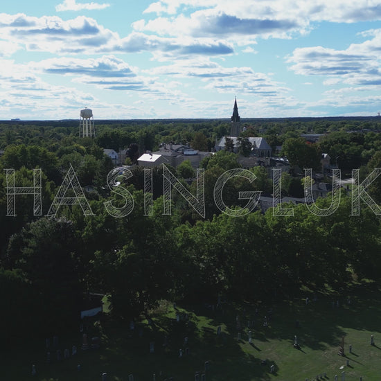 This 4K aerial clip glides rightward across Craig Street Cemetery, with a broad view of Perth, Ontario’s townscape with landmarks like the St. James the Apostle Church and the Perth Water Tower in frame. As the shot continues, it reveals ongoing construction along Craig Street, adding a real-world element of civic development to the scene.