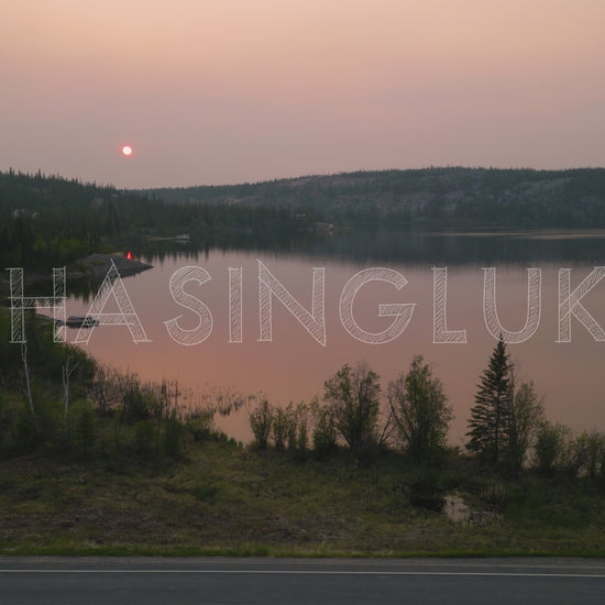 This moody drone sequence follows a smooth sideways flight along Madeline Lake on the Ingraham Trail near Yellowknife. The sky is thick with wildfire smoke, casting a dramatic orange-red glow over the scene. The sun, diffused through the haze, reflects red off the still waters. In the foreground, sparse northern shrubs and trees line both the lake and the roadside, evoking the solitude of the Northwest Territories. This clip is ideal for projects depicting climate events, wilderness solitude, or remote Canadian landscapes.