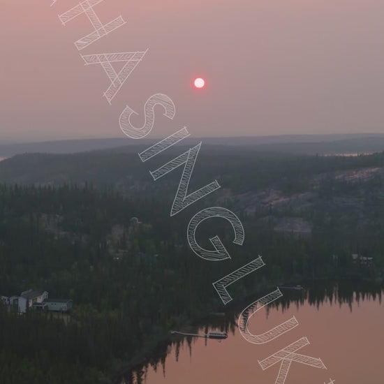 This vertical drone shot opens with a high view over Madeline Lake, capturing its still waters and distant shoreline under a smoky sky. Cabins can. seen down below. The drone slowly zooms out and descends, gradually veiling the far-off landscape until the view narrows in on the Ingraham Trail below. The atmospheric movement, starting expansive and ending grounded, creates a cinematic transition from wilderness to road. Perfect for reels, vertical narratives, or visual metaphors of isolation, descent, or journey.